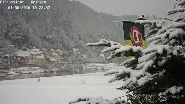 Am Fuße der in Deutschland einzigartigen Festung und unmittelbar an der Elbe, befindet sich die ca. 2400 Einwohner zählende Stadt Königstein. Den Namen verdankt die Stadt der einstigen Burg und späteren Festung, die 1241 erstmalig urkundlich erwähnt wurde. In einer Urkunde aus dem Jahre 1379 wurde Königstein erstmals erwähnt. (Quelle:Königstein / Sächsische Schweiz) Webcam bereitgestellt von: Elbaussicht - Krippen |