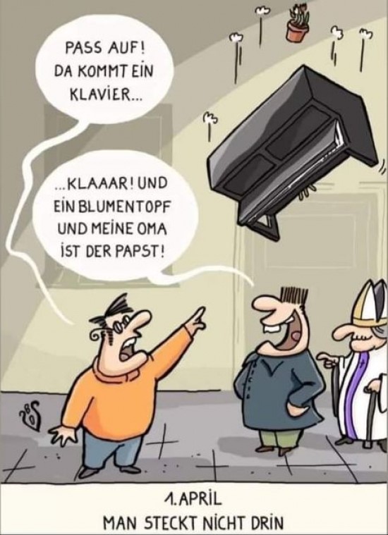 1. April: - Überall auf der Welt wird der erste Tag dieses Monats mit Streichen begangen. Am 1. April wurde Jesus »von Pontius zu Pilatus» geschickt, die Römer feierten ein Narrenfest. Franzosen behaupteten, an diesem Tag sei Judas, der Verräter Christi, geboren. Deshalb habe der Teufel Gewalt über die Welt, dem man mit Streichen zuvorkommen müsse. Früher war der 1. April ein Spaß für Erwachsene und Überlegene; Väter hielten ihre Kinder, Meister ihre Lehrlinge und Herren ihre Diener zum Narren.